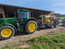 gelenkte Tandemachse und 9m Schleppschuhverteiler.