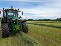 Siloballen pressen mit Press- Wickelkombination, bis 25 Messer, Folienbindung, Tandemachse.